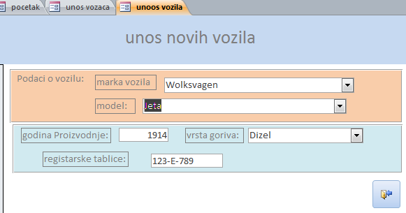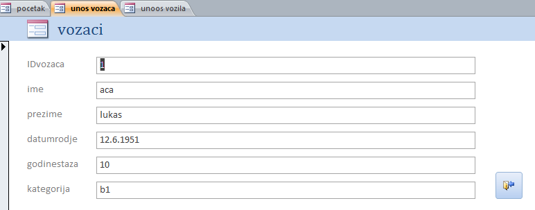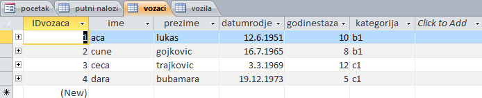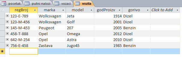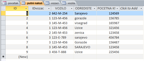 Napraviti bazu putnih naloga slično primjeru na času. U nastavku teksta slijedi par slika i uputstvo za Combo Box.